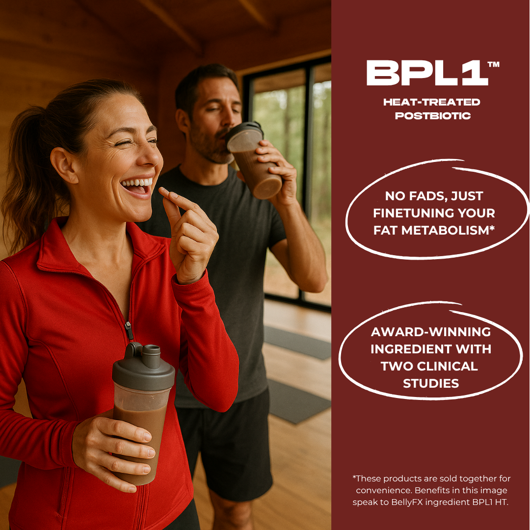 Fuel your day with 17‑superfood Chocolate Elixir and Belly FX™ postbiotic capsules—paired to crush cravings, support digestion, and boost energy—all in one smart bundle.